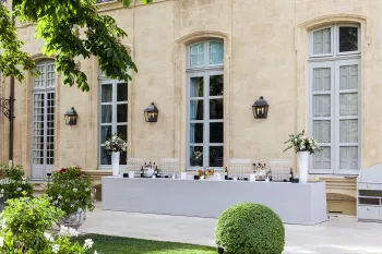 Pour vos cocktails et dîners, nous mettons à votre disposition les salons au rez-de-chaussée et les jardins qui peuvent être aménagés selon vos souhaits.